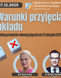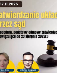 Zapraszamy do udziału w szkoleniu pt. "Symulacja optymalnego przebiegu postępowania o zatwierdzenie układu", które poprowadzą prof. Anna Hrycaj i dr Bartosz Sierakowski.