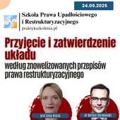 Zapraszamy do udziału w cyklu szkoleń z zakresu prawa upadłościowego i restrukturyzacyjnego,  organizowanych przez Instytut Prawa Upadłościowego i Restrukturyzacyjnego oraz Centrum Kształcenia Podyplomowego Uczelni Łazarskiego w Warszawie. Przedmiotem szkoleń są istotne i aktualne problemy praktyki prawa restrukturyzacyjnego i upadłościowego.